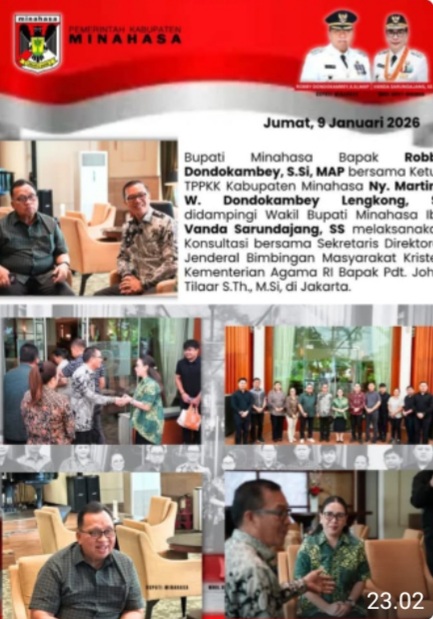 Minahasa, Trendkawanua.com – Pemerintah Kabupaten Minahasa, dipimpin Bupati Robby Dondokambey dan Wakil Bupati Vanda Sarundajang, mengambil langkah strategis dengan melakukan kunjungan kerja ke pemerintah pusat. Agenda utama adalah memperkuat koordinasi pembangunan di bidang kerohanian dan keagamaan guna mendukung program pemberdayaan masyarakat di daerah.