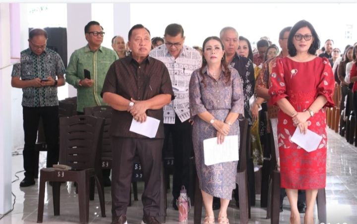 Ibadah syukur tersebut diawali dengan penyerahan kunci Rumah Dinas Bupati Minahasa, sebagai simbol rasa syukur dan awal pengabdian yang dilandasi nilai-nilai iman dan kebersamaan. Ibadah dipimpin oleh Pdt. Winda Walalangi, M.Th, dan berlangsung dengan khidmat.