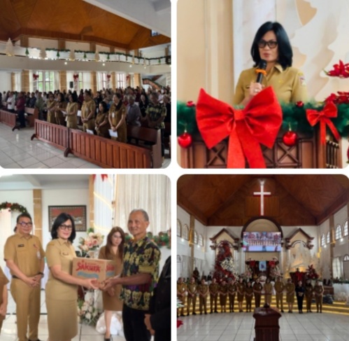 Saat menyampaikan pesan Natal Bupati Minahasa, Sekda Lynda Watania menegaskan bahwa Natal adalah momen sukacita iman yang membawa pesan damai dan kasih bagi seluruh umat manusia.